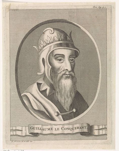 Editor: We're looking at a print from the early 1600s, "Portret van Simeon van Georgien," created by Dominicus Custos and held here at the Rijksmuseum. It’s an engraving, and honestly, it gives off a rather intense vibe. There's a lot of meticulous detail, particularly in the figure's fur hat and beard. What do you make of this portrait? Curator: Intense is a good word for it. It’s got that almost theatrical quality, typical of Mannerism. Notice how Simeon's gaze pierces right through you; it's like he’s sizing you up. What always strikes me is the frame – the elaborate border, the inscription... How do you think these contribute to the overall effect? Editor: They definitely add to the formality and grandeur, almost like placing him on a pedestal, historically. It’s a bit like stage dressing, giving importance. Curator: Exactly! It’s stagecraft. This image wasn't just about likeness; it was about crafting a powerful image of leadership and authority. Those Latin verses at the bottom speak of him restoring ancient honors, a victor. Did you catch the slight exaggeration in his features? Editor: Now that you mention it, yes. The beard seems almost *too* substantial. Curator: Perhaps hinting at wisdom and strength? Remember, these prints often circulated widely. Imagine the impact this image had on those who knew of Simeon only through such representations. What do you think people reading it might have understood? Editor: A carefully constructed image, aimed at projecting power and legitimacy...almost like an early form of propaganda? Curator: Precisely! And realizing this helps us read the artwork much differently. A printed picture wasn't always innocent! It helps reveal the mindset behind those historical figures. Editor: Absolutely! It's shifted my view from simply seeing a portrait to recognizing the carefully constructed image that was intended. Curator: Indeed. We’ve turned up another fascinating layer to uncover what's below the surface of portraiture from that era.