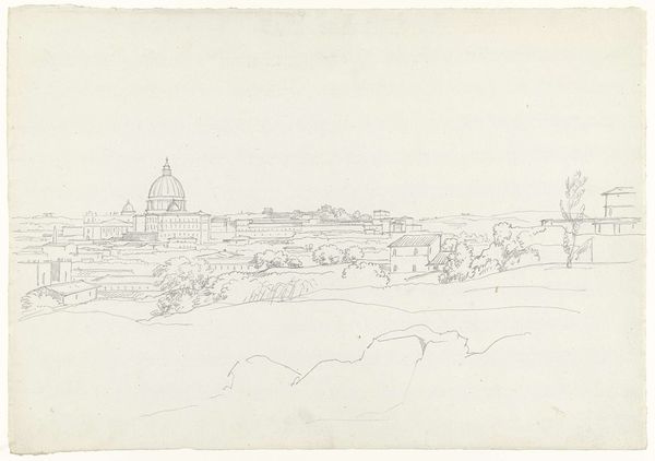 Niels Larsen Stevns sketched Amalienborg and Frederikskirken with graphite on paper. The composition juxtaposes the imposing dome of Frederikskirken with the linear facade of Amalienborg, creating a dialogue between the sacred and the secular. The sketch's form explores contrasts. Notice how the curved lines of the church dome play against the straight lines of the palace. This juxtaposition can be seen through structuralist lenses as a play of binary oppositions, where the spiritual and temporal aspects of society are visually debated. The use of graphite results in subtle tonal variations, suggesting depth and volume. However, the sketch remains unfinished, inviting viewers to complete the image in their minds. This incompleteness reflects a post-structuralist idea: that meaning is never fixed but always deferred and open to interpretation. The sketch's open-ended nature challenges the notion of a singular, authoritative meaning. Instead, the sketch becomes a space for interaction and negotiation between the artwork and the viewer.