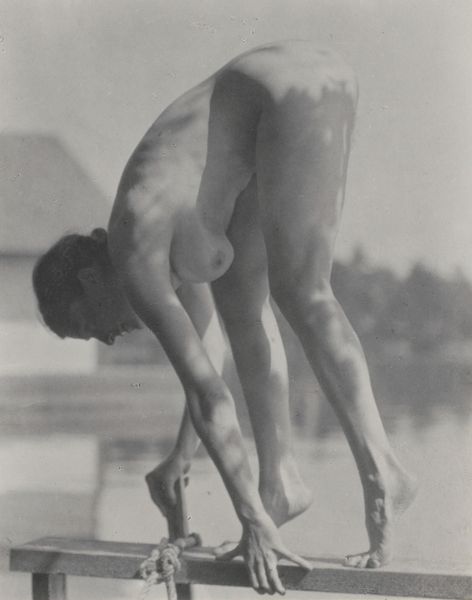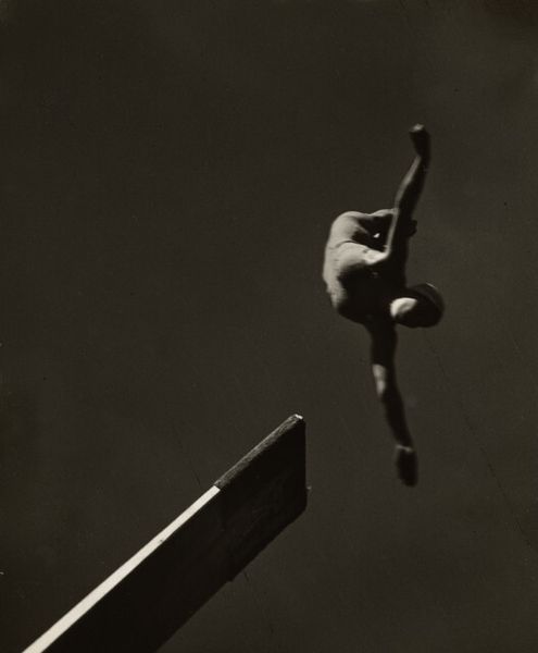 Aaron Siskind made this photograph, Pleasures and Terrors of Levitation #14, using a camera, sometime in the twentieth century. In this work, the body is presented as a site of pure form. Look at how the light falls across the diver’s back, the subtle gradations of tone, from deep shadow to near white. The bodies’ curve is echoed by the arc of the arms, creating an almost musical rhythm. I'm struck by the hands, the way they're reaching out, fingers splayed. The soft blur of the skin is offset by the sharp detail of the fingers and toenails, a reminder of the physical strain involved. The stark monochrome emphasizes the abstract quality of the image, reducing the figure to a study of shape and light. It's like the photographic equivalent of a Franz Kline painting, all dynamic energy and bold composition. Siskind's work reminds me of Harry Callahan. Both photographers found beauty in the everyday, transforming ordinary subjects into something extraordinary.