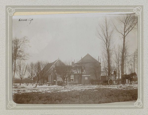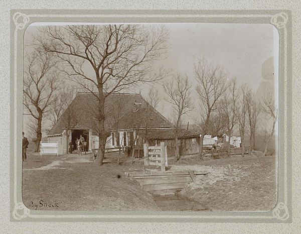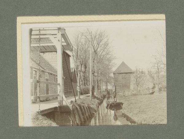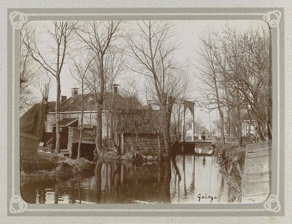 Editor: We’re looking at “Huizen aan een water in Oosterend,” a photograph from around 1905-1907 by Folkert Idzes de Jong. It's a cityscape, almost ghostly with the bare trees and still water. What do you see in this image that speaks to a larger historical context? Curator: What strikes me is the seeming tranquility, a sort of rural idyll. However, early 20th-century Dutch photography, like this, often presents a carefully constructed image of national identity, particularly emphasizing regional cultures. Think about what isn't shown: where are the signs of industrialization, urbanization, or social unrest common in that era? Editor: That’s interesting. I hadn't considered what's *not* there. So you're saying the photograph is promoting a certain image? Curator: Precisely. The image could be seen as promoting a sense of stability and continuity rooted in the past, maybe masking some complex social dynamics of the time. Consider how representations of rural life often served political agendas, particularly around concepts of nationhood and belonging. Who gets to belong and what does belonging mean? Editor: So, it's more than just a simple cityscape; it's a carefully curated message about Dutch identity? Curator: Absolutely. By focusing on traditional architecture and serene waterways, the photographer seems to consciously construct a narrative of harmony and tradition, subtly shaping the viewer's understanding of Dutch culture and history. How might that influence contemporary conversations on regional identity? Editor: I now realize that analyzing what's included, but especially what's excluded, opens up many avenues of discussion beyond a simple aesthetic appreciation. Curator: Exactly! Examining this image prompts reflection on representation, power, and the construction of historical narratives that have shaped our contemporary perceptions.
