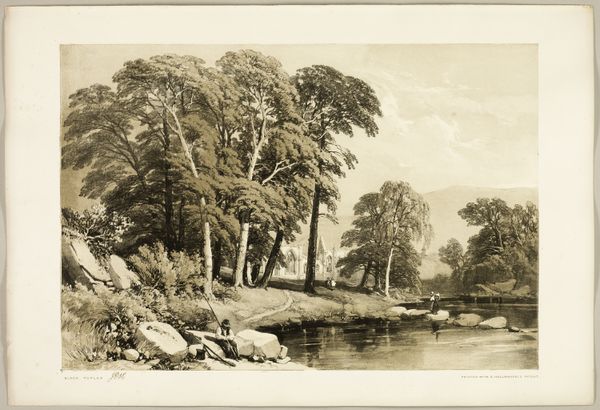 Curator: Peter Henry Emerson made this photograph of the River Wye, Crow-Island Stream, sometime in the 1880s. It's quite striking, isn’t it? Editor: It feels immediately like a memory... sort of hazy, serene. It reminds me of dawns in England somehow, even though I've never been. Does that make sense? It's like I know this place. Curator: I think it's intentional. Emerson championed Pictorialism, a movement emphasizing artistic effect over strict realism. It's not just about recording the landscape, but evoking a feeling. River Wye, particularly, offers this melancholic reading with subdued tones and soft focus that invites introspection. Editor: That makes total sense. Look at the reflection on the water – it almost blurs the boundary between the real and the imagined. I can almost feel the quiet, see myself dipping my toes there, watching the time pass by with the streaming waters... Curator: The River Wye has held this cultural significance and spiritual symbolism, flowing for centuries as both a resource and a site for contemplation, you know. Water symbolizes constant change and transformation...Emerson’s choices mirror that fluidity of perception. Editor: It's interesting because on the one hand there's this stillness. Yet, like you said, it all flows somehow; but what about the tree at the right? The leaves feel so detailed while everything is hazy, they look more modern. It throws me a bit. Curator: Perhaps to give viewers this connection to the world with nature taking the lead while time moves? Consider the symbolism: trees anchor, but their leaves shift and fall—marking change even amidst steadfastness. England has often depicted Nature and landscape this way since the early 19th century. Editor: Hmm. And the lack of any human presence adds to this feeling. This place exists for itself... or, perhaps, for an unseen witness? Like me, I guess! Curator: Or us all... We imbue the work with whatever emotional state we bring to it, yes. I'm still fascinated with how photographers working at that time walked the line between documentation and interpretation so well, shaping the viewers' subjective perception of that imagery. Editor: It makes you wonder if that river is still flowing like that, or if time has blurred that, too, past our capacity of understanding the artist's original impression. This image is like capturing the whisper of a fleeting moment. I like the challenge Emerson proposes for us, thank you for all of this. Curator: Thank you; indeed, and that challenge is art. I won't see it with the same eyes now!