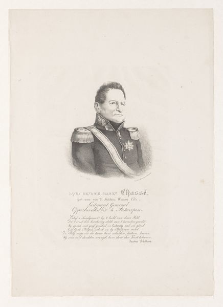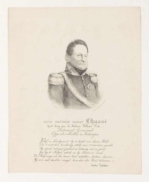 This print of David Hendrik Chassé is of an unknown date, and was made by an anonymous artist. It is an exercise in mark-making. Lithography is a printmaking process using a flat stone or metal plate on which the image areas are worked using a greasy substance so that the ink will adhere to them, while the non-image areas are made ink-repellent. Look closely, and you'll see that the artist has built up the image dot by dot, to create the impression of a light falling on the sitter's face. The texture is almost velvety. It must have taken the lithographer many hours to produce this sensitive portrayal. Although we do not know the artist, the print gives us an insight into the social and political context of the sitter, who was a lieutenant general. Consider the amount of labor involved in his clothing, and what this tells us about the social hierarchy of the time. It’s a reminder that every artwork is the product of many hands.