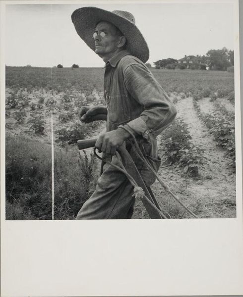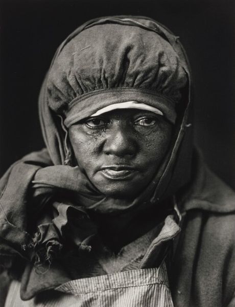 This photograph of a formerly enslaved woman in Alabama was taken by Dorothea Lange. Lange used photography to document the lives of ordinary people, and in this image, we see the effects of hard labor etched on her subject's face and hands. Photography as a medium has a direct connection to industrialization. The camera, a complex mechanism, allows for the mass production of images. But here, the photograph also serves as a tool for social commentary. The woman’s clothing, though simple, speaks volumes about her history and present circumstances. The fabrics, likely cotton, recall the crops she would have labored over during enslavement and after emancipation as a sharecropper. Her hands, clasped tightly around the wooden stick, are weathered from a life of physical toil. Lange's photograph invites us to consider the relationship between labor, materials, and the human condition. By documenting this woman’s existence, she elevates her story, challenging traditional distinctions between art and social documentation.