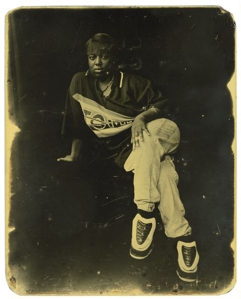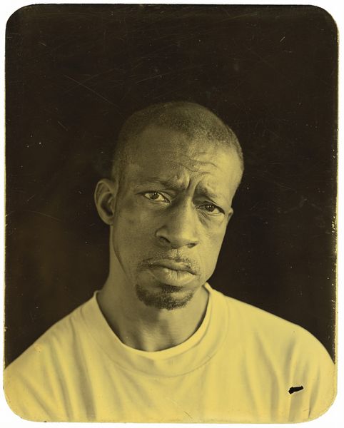 Editor: This is Deborah Luster’s photograph, "Antoinette Ford, St. Gabriel, Louisiana," created between 1995 and 2000. The low key lighting definitely gives it a pensive, maybe even melancholic feel. What catches your eye when you look at this portrait? Curator: For me, it’s that gentle gaze. It reminds me of old daguerreotypes, those haunting portraits from the 19th century. You know, it makes you wonder about the stories etched in Antoinette's face, living in St. Gabriel, Louisiana. I'd imagine the camera has its own truth to tell. What do you suppose her life is like? Editor: I hadn't thought about that historical connection. The lighting and simple composition do feel reminiscent of older photographic techniques. Do you think that choice was intentional, to perhaps evoke a sense of history or timelessness? Curator: Absolutely! Luster's choice of medium, combined with that specific lighting, speaks volumes. Perhaps it's a way of connecting Antoinette’s present with her ancestral past, the stories of countless African Americans who've called Louisiana home. Maybe she is saying, "I'm here and always will be". And maybe also telling us something we haven't thought about yet. What does it conjure for you? Editor: I guess that framing provides context, like viewing history through a specific lens. I initially only focused on the subject's immediate expression. I see a narrative unfolding within. Curator: Precisely. Photography freezes a moment but implies a whole universe of stories. Editor: I learned so much more about the context by thinking about photographic tradition. Thanks for sharing! Curator: My pleasure! And I have you to thank for making me appreciate anew the layers embedded in a seemingly simple portrait.