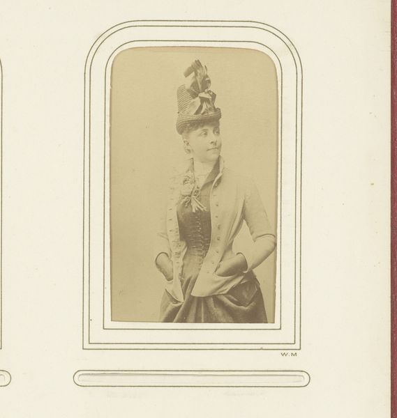 This striking portrait of Marie Grisier-Montbazon was likely made in a photographic studio. The image, rendered in tones of sepia, bears the distinct markings of photographic processes that were rapidly evolving at this time. Light and shadow interact across the surface of the print, giving the figure a subtle three-dimensionality, and evoking the material properties of the sitter's attire. We see the striped patterns of the dress, and the delicate floral embellishments, all captured through the chemical alchemy of early photography. Beyond its aesthetic qualities, this photograph reflects the social and economic contexts of its time, suggesting the sitter was a woman of means, able to afford a studio portrait. The degree of labor that went into producing the dress is also apparent, from the weaving of the fabric to its meticulous construction and ornamentation. By considering the materials, techniques, and social context of this photograph, we can gain a deeper appreciation for its significance, challenging traditional notions of art and craftsmanship.