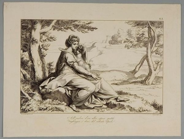 Editor: This is "Boy and Dog" by T. Taylor, a charming print. It evokes a sense of quiet companionship. What symbolic weight do you think the dog and boy image carries? Curator: The image certainly draws upon the archetype of youthful innocence and loyalty. The dog, historically and culturally, symbolizes fidelity and guidance. Note how the boy's gentle touch reinforces a bond of trust and mutual respect. Editor: So the dog is more than just a pet; it's a symbol? Curator: Precisely. The image taps into a deep well of cultural memory where animals often embody virtues we aspire to. It’s about the ideal of companionship and a shared understanding. What does it mean to you? Editor: I see a tender friendship that lasts through time. Curator: Indeed, a bond transcending eras, captured through carefully chosen symbols.
