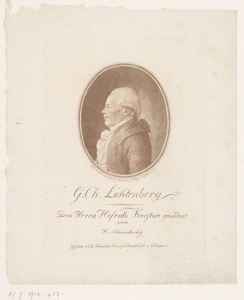 This is Guillaume Philidor van den Burggraaff's portrait of Jean de Landtsheer, rendered with etching. The composition, framed by a stark oval, immediately draws your eye to the figure's profile. The lines, etched with precision, capture the contours of his face and the texture of his clothing. The portrait's strength lies in its formal structure, which speaks to broader ideas of representation and identity. Consider the choice of profile, offering a view that is both revealing and concealing. This creates a tension, inviting us to speculate on the sitter's character. How does the artist negotiate the boundaries between public persona and private self? The fine lines and subtle shading, while seemingly straightforward, underscore the complexity of portraying an individual. The formal elements of line and form combine to create a representation that engages with notions of appearance and essence, inviting ongoing interpretation.