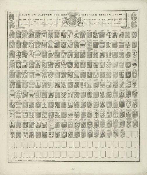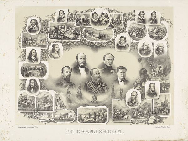 Theo Neuhuys created this commemorative print for the Dutch Music Festival in Amsterdam in 1902. At first glance, it appears as a formal arrangement of portraits framed by ornate borders in soft beige. The grid-like structure, however, creates a complex interplay between individual representation and collective identity. The portraits, all rendered in a monochromatic palette, are meticulously arranged, suggesting a unified artistic community. The bordering vegetal motifs, while decorative, seem to echo a sense of organic growth and interconnectedness of the individuals within the artistic sphere. The inscription, ‘Eigen Kunst is Eigen Leven’—'Own Art is Own Life'—further emphasizes this link. The structure of the print challenges the traditional notion of the individual artistic genius, instead presenting a network of artists contributing to a shared cultural life. The symmetrical layout and repeating patterns invite a reading of art as a system, where individual contributions are elements within a larger cultural framework. This print invites us to consider how collective memory and artistic identity are constructed through formal structures and visual codes.