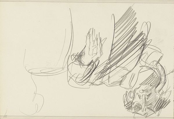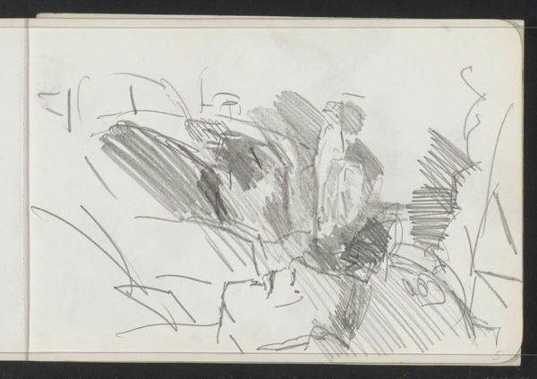 Curator: Ah, Bramine Hubrecht’s “Group of Figures with Hats,” estimated to have been created sometime between 1865 and 1913. A pencil sketch held here at the Rijksmuseum. Editor: My first impression? A fleeting moment caught on paper. It’s delicate, almost hesitant, like a half-remembered dream of a social gathering. There's a softness to it. Curator: Softness, yes, and an interesting record of a very particular moment of bourgeois society. We must remember that the hat, the bourgeoise hat of the era, was such a telling class marker and it defined an epoch. The artist clearly felt something important about representing this motif, or they wouldn't have returned to it. Editor: You know, what strikes me is how incomplete it feels, like Hubrecht wasn't aiming for photographic realism but capturing something more ephemeral—the gestures, the postures. Were they known people for instance? Curator: Alas, details elude us. Given the timeframe, this drawing emerged within the milieu of evolving social structures, and artistic expressions finding freedom to represent this transformation. Perhaps Hubrecht's focus wasn't photographic representation but a societal commentary through dress and grouping. Editor: A commentary perhaps! Or a celebration of the artistry of millinery, but look at the rest of the image -- it is stark, unembellished. And in all that blank space, you can also read emptiness and ennui. I read a degree of skepticism as well, in these almost clinical pencil marks. Curator: I find it difficult to disagree -- yes, this could definitely speak to this societal ambivalence in Hubrecht’s era. So, it stands as an interesting depiction of fin-de-siècle life in transition in the Netherlands. It does invite us to delve beyond the mere depiction. Editor: Absolutely! It's that space, the absence of details, that speaks volumes. And that is the allure of this type of sketch: we complete the scene with our imagination, colored by our time. Curator: Precisely. It shows a snapshot, a captured thought provoking deeper thoughts, a social register, if you will, of the soul.