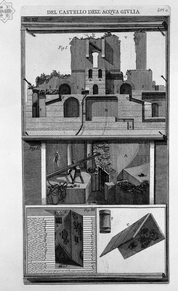 Editor: This is Giovanni Battista Piranesi’s print titled "View of the entryway to the city of Pompeii, with sidewalks and shops." The lines are so precise and create a really captivating, almost haunting atmosphere. How do you interpret this work? Curator: Haunting is a great word. Look at this work not just as an architectural rendering, but as a commentary on power, ruin, and our relationship with history. Pompeii, frozen in time by Vesuvius, becomes a stage upon which Piranesi explores themes of mortality and the impermanence of empire. The exacting detail emphasizes the scale of the excavation. Editor: So, you’re saying that Piranesi's focus is not only on accurately depicting the architecture but also on exploring the themes that the ruins represent? Curator: Precisely! Consider how Piranesi positions the viewer. We're given a privileged, almost god-like perspective, gazing down at this unearthed city. Who gets to excavate the past? Whose narratives are privileged? The visual language of classical architecture itself was politically charged. Neoclassicism, which Piranesi engaged with, wasn't just about aesthetics. It was intrinsically linked to ideas of order, rationality, and the revival of 'ancient glories' that conveniently legitimized contemporary imperial projects. Do you see how these excavations can be tied to questions of colonialism? Editor: I think I understand. By emphasizing the "ancient glories" of Rome, contemporary powers could justify their own expansion and domination… Curator: Exactly! Piranesi, perhaps unintentionally, invites us to question those justifications. What are we unearthing? And for what purpose? It forces us to look critically at how we use history. Editor: This has given me a lot to think about. I had never considered how architectural drawings can contain complex messages related to politics and society. Curator: The beautiful ruins speak of the temporality of power itself, and question the motives behind rediscovering them. Art allows these themes to become apparent, and helps question past injustices.