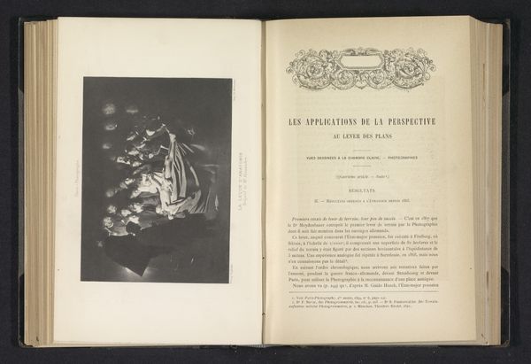 Curator: Standing before us is an opened book from 1889 by J.-J.-D. Swolfs titled "La création et l'oeuvre des six jours", roughly translating to "The Creation and the Work of Six Days," presented as both scientific and apologetic studies. What strikes you most about it? Editor: The immediate impression is somber. A faded monochrome print faces a title page dense with typography. It suggests a heavy intellectual atmosphere, a kind of Victorian earnestness around harmonizing faith and nascent science. Curator: That blend is key. Apologetics in this context refers to a defense of religious doctrine through reasoned argument. Note the printer's emblem, a beehive wreathed in Latin— "Labor improbus omnia vincit," roughly, "relentless work conquers all". This evokes industry and divinely sanctioned human enterprise. Editor: The emblem feels indicative. The Industrial Revolution was in full swing. It raises questions of how such publications participated in debates of faith amidst a changing world shaped by progress. How did theological discourse utilize scientific methodologies to reassert narratives? Curator: Precisely. The book becomes a battleground, an attempt to reconcile perceived challenges to biblical accounts with contemporary geological or biological understandings. Notice "quatrième édition, entièrement revue et augmentée"— this is the fourth edition, fully revised and augmented, indicating an evolving dialogue. Editor: That evolution interests me. It reveals public reception. Who was this text aiming to convince? Clergy seeking to maintain doctrinal authority or perhaps lay readers grappling with evolutionary theory or a bit of both? Curator: The text had implications within the socio-political contexts. These attempts at integration underscore not just faith but also institutional power, and Swolf's work aimed to reinforce faith's authority in that rapidly changing world. It represents a complex attempt to harmonize belief systems in an age defined by scientific progress, as much social as religious. Editor: The weightiness makes sense, both in design and implication. Considering how religion responded to disruptive, world changing concepts interests me from our own present context too. It holds a fascinating conversation about our world views, where then, where now, and potentially for times to come.