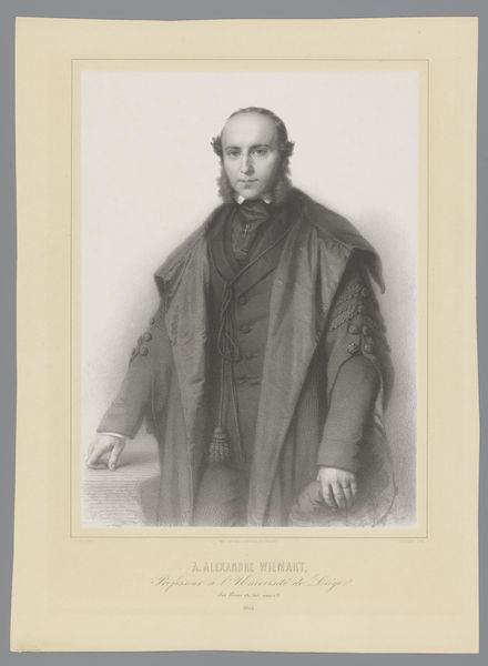 This is a portrait of Gijsbert Karel van Hogendorp, made by Coenraad Hamburger in the 19th century using lithography, a printmaking process that relies on the chemical repulsion of oil and water. The image is built up from tiny dots and lines, a testament to the artist's skillful manipulation of the lithographic stone. Look closely, and you can see how the textures of Hogendorp's fur coat and the rich drapery in the background are rendered. Lithography emerged as a relatively affordable method for producing images. In contrast to traditional portrait painting, which was usually reserved for the wealthy elite, lithographs allowed for wider distribution. They could be reproduced in newspapers, books, and as individual prints, making images more accessible to a broader public, thus playing an essential role in shaping public opinion and visual culture. Considering the materials, making, and context is crucial to understanding its full meaning, and challenging traditional distinctions between fine art and craft.