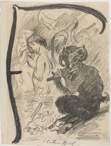 Editor: So, this lithograph is entitled "Rebellion," by Ernst Barlach. I'm immediately struck by the raw emotion—the figure's pose, almost a shout. What's your take on this? Curator: I feel a turbulent inner struggle visualized, don't you think? The jagged lines echo the chaos. Is he rebelling against societal norms, perhaps? Barlach lived through intense periods of political and social upheaval in Germany. Editor: That’s a good point. The figure seems trapped by the lines around him. Curator: Trapped, yes, but also defiantly clutching something. Is it a symbol of hope, or perhaps the very thing he's rebelling against? It's that ambiguity that keeps me returning to this piece. Editor: It makes you wonder about the story. Thanks for sharing that, it really changes how I see it. Curator: My pleasure. Art's always a conversation, isn't it?