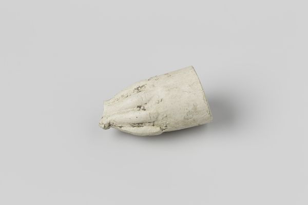 Editor: Here we have Frans Stracké's plaster sculpture "Fragment van de Oranjeboom," created in 1874. It feels incomplete, like a piece of a grander, now-lost puzzle. What do you make of its fractured nature? Curator: The materiality of the plaster itself speaks volumes. Consider its inherent fragility. This 'fragment' isn't just a visual detail; it reflects the precarious nature of historical memory, particularly regarding symbols like the Oranjeboom—a loaded Dutch symbol of national identity. What were the social conditions that led Stracké to produce such a monument at this particular time and from this particular medium? Editor: So, it's not just about what's depicted, but also about the *stuff* it's made of, and how that reflects its cultural context. Curator: Precisely. Think about the labor involved. Who mixed the plaster? Who cast it? What was the division of labor in Stracké's studio? Plaster, often viewed as a cheap imitation of marble, questions the boundaries between 'high art' and industrial production in the late 19th century. Did this intended to be the final piece, or only part of a more elaborate monument in a more precious material? What does this signify in its original social context? Editor: It makes you wonder about the accessibility of art, too. Was plaster meant to democratize access to symbolic sculptures? Curator: A good point. And consider its current display in the Rijksmuseum. It's a remnant, an artifact, speaking to how national narratives are constructed, fragmented, and re-presented through material culture. Its fractured state encourages to question historical grandeur rather than passively accept it. What do we consume when we consume the cultural symbolism embedded within it? Editor: That really makes me see the piece differently. It's not just a sculpture of something, but a statement *about* something, about history itself. Curator: Exactly. And the material provides insight into how and why. Looking closer at how material meets cultural and social circumstances really provides so much depth.