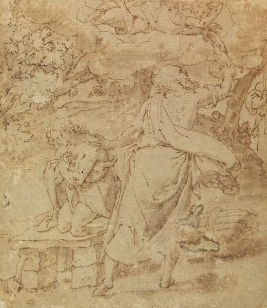Albrecht Dürer rendered this depiction of The Holy Trinity in pen and ink, capturing a complex theological concept through symbolic imagery. Dominating the composition, God the Father stands, crowned with a papal tiara, embracing the crucified Christ. Above them hovers the dove, symbol of the Holy Spirit, completing the Trinity. Consider the recurring motif of the dove, a symbol extending far beyond Christian art. In ancient mythology, it was associated with love, peace, and renewal, often linked to goddesses like Aphrodite and Venus. Its adoption into Christian iconography signifies divine grace and purity, yet echoes the earlier associations of the classical world. Observe how gestures and symbols migrate and evolve through time. Dürer’s Trinity, while rooted in Christian doctrine, unconsciously absorbs and reinterprets earlier visual languages. It is a powerful reminder that cultural memory persists, subconsciously shaping our artistic and spiritual expressions.