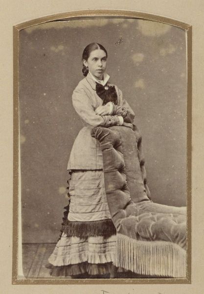 Editor: This photograph, titled *Pa-da-no-a-pa-pe, He Whom a Rockawee Struck. Head Chief of the Yankton Sioux [Lakota]. Dakota.* was created by the McClees Gallery. I’m struck by the subject's direct gaze, but also by the very formal studio setting. What can you tell me about the context in which it was made? Curator: These photographic portraits served a dual purpose. On one hand, they documented Indigenous leaders, but on the other, they were often used to reinforce colonial power structures. Consider how the subject is presented within this oval frame, almost like a specimen. Editor: That's a disturbing perspective. I hadn't considered how the photograph itself could be a tool of control. Curator: Indeed. The commercial success of these images also contributed to a romanticized, and often inaccurate, depiction of Native Americans that shaped public opinion and policy. These photos made a big political impact. Editor: That changes everything about how I see this image. It really highlights the complex relationship between art, power, and representation.