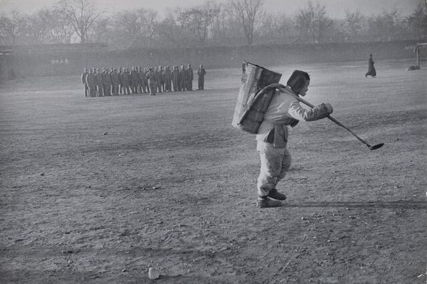 Editor: Here we have an intriguing gelatin-silver print, dating from 1941-1945, titled "Voetbalwedstrijd tussen de manschappen en de officieren; spelers brengen voor of na de wedstrijd de Hitlergroet." It's unsettling – the everyday activity of a soccer match juxtaposed with the stark reality of the Hitler salute. What jumps out at you when you see this image? Curator: I’m drawn to the materiality of the photograph itself. Consider the socio-political context surrounding its production and consumption. A gelatin-silver print from this era was not just an image; it was a carefully manufactured artifact. This image was mass produced to serve a political aim, where its circulation influenced public sentiment toward labour, duty and allegiance. Editor: That’s a very interesting perspective. I was primarily thinking about the symbolism of the image, whereas you are focusing on its physicality and its circulation. So, you are considering the production, right? Curator: Precisely! We have to consider who made this image, under what conditions, and for what purpose. The ‘anonymous’ tag itself tells us much about its intention to manufacture propaganda, to elicit patriotism within a collective. Editor: That makes me reconsider my initial reaction. Thinking about it as a product created within a system of labor really changes how I view the soccer game depicted. It’s not just an innocent game anymore, it’s part of a propaganda machine. Curator: Exactly. It becomes a tool for reinforcing the prevailing social and political order. The medium isn’t simply the message; it’s also evidence of the machine creating that message. Editor: I now see this seemingly simple image as evidence of mass construction in political thinking. Thanks for shifting my focus towards materiality! Curator: The lens through which we view art deeply informs our interpretation. Seeing how process shapes the meaning adds critical new perspectives.