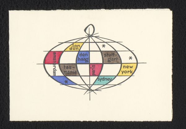 Curator: This is Puzzle Card Number 6 from the "Jokes" series, dating between 1887 and 1891. It was issued by Duke Sons & Co. to promote Honest Long Cut Tobacco. Editor: Immediately, I'm struck by how the nested, spiraling text bands create a dizzying optical effect. The color shifts also feel very intentional; it is such a complex composition for an advertisement. Curator: Right. It's intriguing how advertising utilized puzzle cards during this period. They were collected and traded. Think about the implications on brand engagement! These weren’t mere advertisements but collectible commodities intertwined with leisure and social activity. Editor: Yes, and beyond its commercial function, the card employs several formal devices to draw you in. The careful orchestration of contrasting colors--the warm yellows against cool blues, for instance--amplifies the visual rhythm. Curator: These cards tell us much about the culture of collecting at the time, reflecting how objects became part of constructing personal identity and social networks. Plus, consider the level of literacy and engagement needed to solve the puzzle itself! Editor: Definitely, it is hard to solve! And those geometric floral flourishes around the edge lend it a rather quaint and decorative border. Curator: Beyond aesthetics, these flourishes mirror design trends influenced by the Arts and Crafts movement, democratizing "high art" by integrating it into everyday commercial objects. They suggest an aspiration towards refinement during a time of rapid industrialization. Editor: Fascinating. For me, I see that play of color, shape, and depth which elevates the simple commercial graphic into a compelling piece. It’s far more than meets the eye. Curator: Agreed. Thinking about its circulation helps understand the wider reach advertising and corporate culture had during this time. It offers insights into consumer habits and what held social value. Editor: Considering it afresh has reminded me about the ingenuity found even within promotional materials, and to not underestimate their visual power.