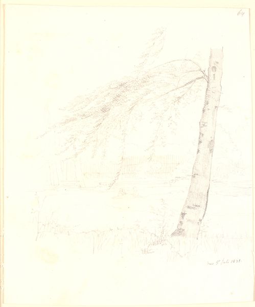 Editor: Here we have "Sivgruppe," or "Group of Reeds," a pencil drawing from 1835 by Christen Købke. The sketch is subtle, almost whispered. I'm immediately struck by how ephemeral it feels. What captures your attention when you look at it? Curator: Ephemeral is a great word for it! To me, it's like stumbling upon a secret whispered by the wind. I think of it not just as reeds, but as the embodiment of transience, captured in a fleeting moment. The delicate pencil work… it's not about depicting reeds perfectly, is it? Editor: Not at all. There’s a haziness to it. Was Købke perhaps more interested in feeling than photographic accuracy? Curator: Precisely. And it’s tempting to place this in the Romanticism movement, where nature serves as a mirror reflecting the artist's inner state. He's not simply recording a landscape; he's translating emotion. Do you feel any personal connection to this kind of raw, almost unfinished landscape? Editor: I do. I grew up near wetlands. There’s a calmness to the image, but also something slightly melancholy. Curator: The melancholic whisper of passing time... it invites introspection, doesn't it? The open space around the reeds allows our imagination to wander. And, in that emptiness, perhaps we discover a part of ourselves. It certainly makes me remember long summer afternoons by the lakeside. Editor: So, it's less about the reeds themselves and more about what they represent to each of us individually? A portal to personal reflection? Curator: A beautiful way to put it. Art’s about feeling, connecting, interpreting. I'll think of "Group of Reeds" differently now. Thanks for the chat!