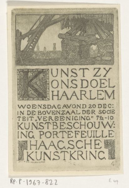 Curator: At first glance, the typography seems like an architectural blueprint for a utopian city. Editor: Fitting, then, that this drawing, created sometime between 1874 and 1932, is titled "Ontwerp voor de omslag van de folder Catalogus der n.v. Theosofische Ver. Uitgevers Mij. Amsterdam" — or, "Design for the cover of the catalog of the Theosophical Society Publishing Company, Amsterdam" – by Mathieu Lauweriks. It’s rendered in graphic art on paper. Curator: Exactly! Theosophy sought to unify diverse spiritual and philosophical traditions. The almost blocky, monumental lettering, hints at stability, tradition and the notion of foundational knowledge. This visual language certainly resonates with the Theosophical Society’s aims. Editor: I'm intrigued by the visible grid underneath the text. It betrays the hand-made quality, but it doesn’t break the rigid visual impact—it adds another layer of process. The grid itself is a symbol of imposed order, challenged and humanized by Lauweriks' style. Curator: It highlights the interesting tension here between individual expression and structural systems, a kind of negotiation between freedom and control so critical to discussions around theosophy itself as an organizational system attempting to manage human belief and connection to a spiritual domain. Editor: Plus, there's the slightly fading type near the bottom of the composition… It mirrors the idea that even seemingly solid structures can be ephemeral. Everything transforms. Curator: Absolutely. That notion of transformation connects us to ongoing debates surrounding identity, the destabilizing effect of modernity on long held certainties. As a draft design, the piece really gets me thinking about the provisionality of all systems, even those, like Theosophy, promising absolute knowledge. Editor: For me, it's like stumbling upon a beautiful ruin—a fragment of a grand, unfulfilled ambition. A testament to the human need to organize… well, everything! Even the unorganizable. It's really thought-provoking on that level.