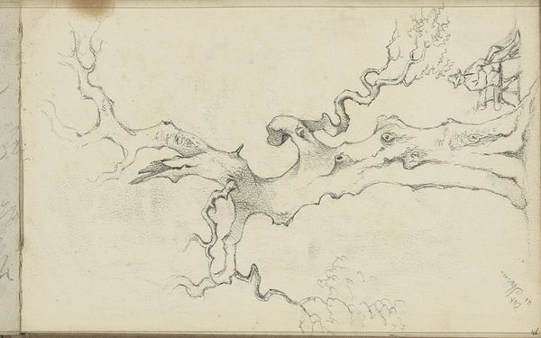 Editor: This is "Boom," a pencil drawing from around 1874-1875 by Willem Cornelis Rip. It has such a fleeting, almost dreamlike quality. What stands out to you when you look at this sketch? Curator: What I find striking is the way this simple sketch speaks to a larger cultural trend of landscape appreciation in the late 19th century. It’s a humble work, a sketch, yet it participates in a dialogue about the value of the natural world that was very present in artistic and social circles at the time. How do you think the rise of industrialization impacted the desire for these landscape drawings? Editor: That's interesting, I hadn’t considered the industrial aspect! Perhaps it's a reaction to that, a longing for something untouched and natural. But how does a simple pencil sketch play a ‘public role’, as you say? Curator: Well, consider where it might have been displayed, who might have viewed it. Even a simple drawing, when exhibited or reproduced, can reinforce or challenge dominant ideas about nature, beauty, and the rapidly changing world. Was it meant to capture the attention of a large public? Or rather of the upper middle class interested in art and design? Editor: That makes sense. So, the artwork's cultural impact isn’t just about its aesthetic qualities, but also about how and where it circulates. I guess a museum displays, gives value, and interprets… making even a small sketch significant. Curator: Precisely. Think about the act of observing nature at this period and then documenting this on paper with pencil. Doesn’t this practice indicate also that people wanted to possess an idyllic and vanishing part of the Netherlands? Editor: I hadn't thought of that possession element before. This sheds a completely new light on Rip’s landscape drawings. Thanks! Curator: Absolutely, seeing art in context really enriches our understanding.