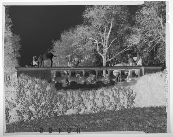 Curator: This photogram, "Untitled (derailed train)" by Hamblin Studio, presents a stark image. My immediate impression is one of unsettling stillness despite the chaotic subject. Editor: The derailment itself is a violent rupture, but the absence of people directly affected suggests a removed perspective, almost like examining a staged event. What historical context might inform our understanding? Curator: Considering the era, perhaps the photogram reflects a broader anxiety about industrialization and its potential for catastrophic failure, specifically anxieties about the safety and regulation of railroads, which were still relatively new at the time. Editor: That's interesting. I'm struck by the inverted tones, which emphasize the textures and structural forms—the twisted metal, the rigid geometry of the train cars—revealing an underlying order disrupted by the accident. Curator: Perhaps the photogram is a commentary on the fragility of progress, a visual metaphor for societal disruptions caused by unchecked technological advancement. Editor: A compelling reading. The piece invites us to examine not just the event, but also its place in the wider narrative of industrial anxieties.