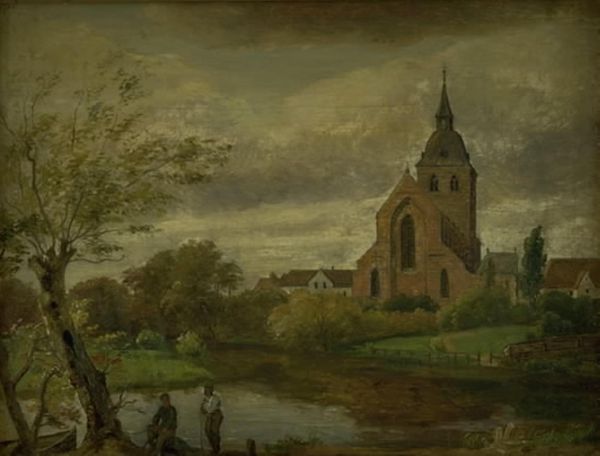 Editor: This is Maurice Utrillo's "Church at St Hilaire," housed at the Tate. I'm really drawn to the texture of the church walls; it looks so rough. What does the composition suggest to you? Curator: Observe how Utrillo uses a limited palette, emphasizing whites and grays. The formal structure relies on contrasting textures and geometric shapes, creating a powerful visual statement about form and volume. Editor: So, it's less about the church itself and more about how he paints it. Curator: Precisely. The church serves as a vehicle for exploring the interplay of line, form, and texture; a canvas for pure visual expression. Editor: I see it now! Thanks for pointing that out. Curator: Indeed, appreciating the formal elements allows for a deeper connection to the artwork.