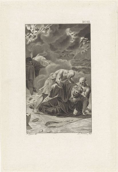 Editor: So, this is "December," an etching by Cornelis Dusart, created somewhere between 1679 and 1704. It's a busy scene, figures struggling against what I assume is winter weather. The mood seems harsh, maybe a little comical too? What catches your eye in this piece? Curator: Ah, Dusart's "December," a true glimpse into Dutch Golden Age life, or at least a particular perspective on it! I'm drawn to the raw energy. Those aren't just figures struggling, but characters—each with their own implied story. Notice how the artist used etching to create textures that evoke both the biting wind and the heavy clothing. I almost feel like I can hear the whoosh of the wind in that dark sky... but I wonder, what does the December weather make you *feel*? Editor: Cold, definitely! And a bit… chaotic? I see people slipping and struggling, but they also seem bundled up, like they’re used to it. Is this meant to be funny? Curator: Perhaps, or maybe a bit ironic. Daily life, even in hardship, has its routines. Think about the details: the bundled clothes, the determined expressions. Does that chaos, to your eye, overshadow the…humor? Because for me, Dusart captured not just the struggle, but a stubborn resilience. Editor: I guess I see both now. The figures do seem determined, despite the obvious discomfort. The… resilience helps. I hadn't considered that. Curator: That’s the beauty of art, isn’t it? We bring our own "weather" to the experience. This etching is now as much your reading of it, as Dusart’s initial creation. Editor: Right. Looking at it again, it feels less like a simple, cold struggle and more like a…celebration of surviving winter? Thanks! Curator: Precisely. Consider also what "December" might represent beyond the literal: the ending of a cycle, the preparation for renewal… art always invites new journeys.