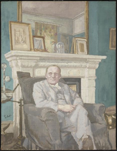 Editor: This is James Ensor's "Woman with Blue Shawl," painted in 1881. The oil on canvas is quite striking, with an almost somber mood created by the dark background, which really makes that shawl pop. What do you see in this piece? Curator: Oh, the shawl absolutely *sings*, doesn’t it? It’s almost electric against the subdued palette. For me, it’s a study in contrasts, really – the cool blue against the warm, muted tones, the detail in her face versus the almost gestural background. Ensor captures her, doesn’t he? Not just her likeness, but something of her *essence*. Do you feel that gaze? Editor: Absolutely. There's a real depth in her eyes. Almost like she’s looking right through me. What do you think Ensor was trying to communicate beyond a simple portrait? Curator: Perhaps the weight of years, maybe a hint of the secrets held within? I also feel like Ensor plays with Impressionistic brushstrokes, flirting with it, yet keeping it grounded by this central, very present figure. And look at how that bright shawl just pulls our eye towards her… He invites us to reflect on ageing, presence, resilience... What do you make of her stillness? Editor: It makes me wonder about her story, what her life was like during that period. Curator: Exactly! She feels incredibly real, doesn't she? Almost like a memory, half-faded, half-blinding. I do feel my understanding of Ensor and his relationship with figures has grown during our discussion. Editor: Definitely. Thinking about those brushstrokes and the contrast helps understand his emerging style during that time. Thanks for shedding light on this painting!