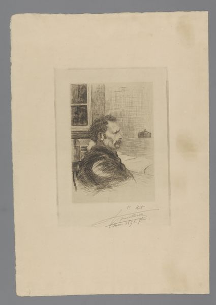 Curator: Here we have a lithograph from 1842 by J.V. Gertner, a portrait of J. O. Lindam. Editor: It strikes me immediately as very controlled, almost austere, in its use of line and shadow. Very balanced. Curator: The composition is indeed meticulous. Notice the way Gertner uses hatching and cross-hatching to define form. Observe, too, the delicate use of light; it models Lindam’s face, and how the artist guides your eye across the subject. The contrast further suggests a man deep in thought, or perhaps troubled by concerns. Editor: Given the time period, that carefully cultivated image likely served a specific social function. What role did portraiture play for the bourgeoisie of that era? Was it about solidifying status or projecting a particular identity? It’s interesting to wonder what Mr. Lindam did, or wished to appear as. Curator: True, the historical context frames how we read such works. However, let us consider the intrinsic value. Gertner masterfully exploits the qualities of lithography. Look at how he obtains such variety in tonality despite the medium's limitations. Notice, too, the formal conventions of Romanticism expressed in the dramatic use of light and the detailed naturalism of the features. Editor: And thinking historically, prints and lithographs made images more accessible to a wider audience. This allowed the concept of celebrity, for example, to filter down from royalty and aristocracy. Maybe Lindam aspired to join their ranks! Curator: Perhaps, but the technical virtuosity elevates this work beyond mere likeness. Its formal arrangements demonstrate a clear, rational aesthetic. It speaks volumes on an objective plane about how art is assembled. Editor: Yet its existence and creation cannot be divorced from the social and economic contexts that fueled its production. Art does not exist in a vacuum, after all. Ultimately it is difficult to isolate the impact or original goal when our viewing context and assumptions are now quite remote. Curator: Well, for me, analyzing Gertner’s compositional choices provides more lasting insights than pondering lost motivations. Editor: For me, both methods, together, deepen our appreciation for pieces like this.