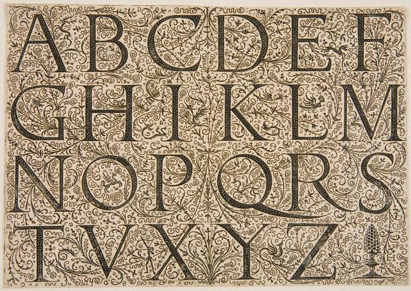 Heinrich Aldegrever created this engraving of the alphabet on a metal plate sometime in the first half of the 16th century. The alphabet is presented in upper-case letters inside a frame with foliate elements, while on either side are playful putti. Aldegrever was a printmaker working in Germany during the Reformation. While he produced some images that supported the new Protestant faith, he was also an ornamental designer for a variety of luxury goods. Like other so-called "Little Masters," Aldegrever made small prints for collectors, that served as models for artisans. The alphabet was becoming increasingly important at this time, because of the spread of printing, the emergence of vernacular languages, and rising literacy rates. This print suggests that even something as practical as the alphabet could be made into a work of art. By studying Aldegrever’s prints alongside other decorative objects from the period, we can better understand the culture of the early modern period.