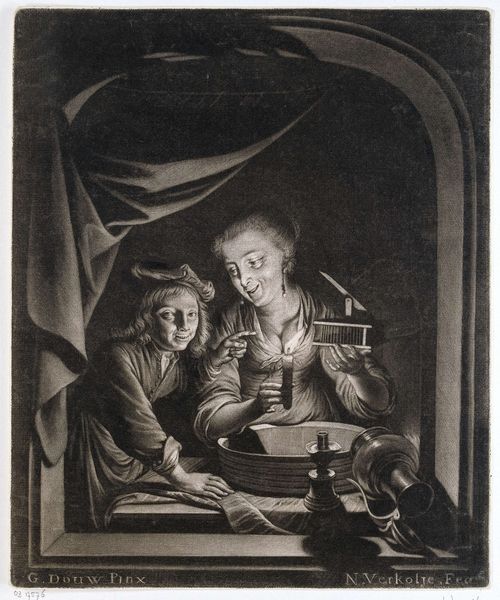Domenicus van Tol's "Children with a Mousetrap" is an oil on canvas painting that offers a peek into 17th-century Dutch life. Van Tol's choice of oil paint allowed him to create a smooth, almost enameled surface, which helped to give the painting a realistic quality. The layering of oil paint permitted the subtle blending of colors, and the interplay of light and shadow, giving the image depth and volume. The mousetrap itself takes on a strange significance. Was it factory-made, or carefully constructed by a local craftsman? Either way, it would have been a valuable, and relatively expensive object in its time. The cat too, is a tool - a 'mouser', the children's plaything but also a domestic servant. This painting, with its quotidian subject matter and its intimate, domestic setting, blurred the lines between art and everyday life, and continues to offer insight into the social and material world of the Dutch Golden Age.
