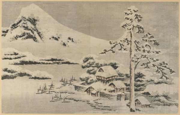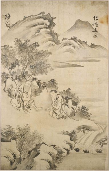 Curator: Looking at this, I feel an incredible sense of serene solitude. The ink wash creates such a gentle, almost melancholic atmosphere. Editor: Indeed. This is Ch’eng Yu-ts’ung's rendering of "The Poet Tao Yuanming Returning to His Farm at Lili." Yu-ts'ung captures the poet's famous return to rural life. Curator: The boat, drifting so peacefully. It's like the landscape itself is breathing a sigh of relief. Is that Tao himself in the boat? He looks contemplative. Editor: Yes, that is Tao. Yu-ts’ung uses the image to explore ideas of social withdrawal that were deeply embedded in the artistic culture of the time. Curator: I love how the landscape is both detailed and yet ethereal. It feels like a memory. The mountains in the background, fading into the mist... Editor: It's a conscious choice, isn't it? Using ink to evoke mood as much as place. The piece invites us to reflect on our own relationship to nature and society. Curator: A poignant invitation, I think. It makes one long for simpler times. Editor: Ultimately, Yu-ts’ung challenges our modern perceptions of art's societal role by reminding us of its deeply personal and political roots.