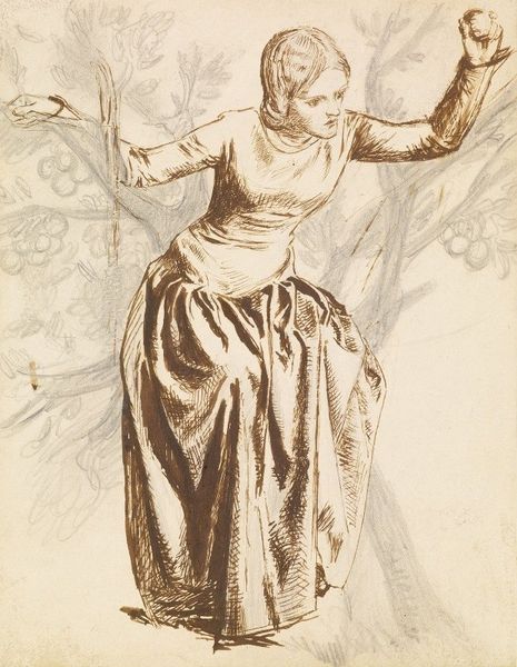 Edward Burne-Jones created "Golden Greeting," a drawing exploring idealized love through a gendered lens. Burne-Jones was a key figure in the British Aesthetic movement, a movement reacting to the industrial revolution. The movement valued beauty for its own sake. Here, we see a man kneeling before a woman, receiving a kiss. The woman is an ethereal being, depicted in soft colors that emphasize her purity and grace. The man is kneeling, highlighting the power dynamic between them. Burne-Jones painted during a time when ideas about gender roles were very strict. Woman's identities were often reduced to symbols of purity or morality. This work reflects the Victorian idealization of women, but does so in a way that is also deeply personal. Through the use of mythological and romantic themes, Burne-Jones expressed his desires and anxieties about love and relationships. The drawing invites us to consider the societal expectations placed on men and women, reflecting the complex ways we navigate love and power.