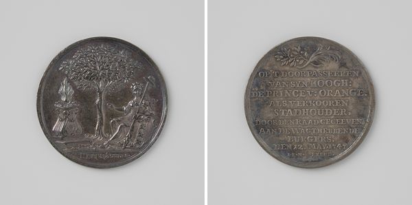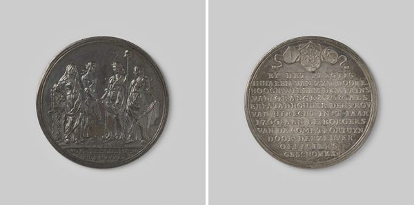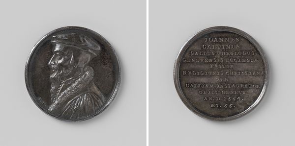 Editor: Here we have a bronze portrait medal titled "Overlijden van Willem Farel, hervormer in Frankrijk en te Geneve," created by Jean Dassier in 1725. The piece has an austere feel to it, a stern profile. How do you interpret this work? Curator: This medal opens up a fascinating dialogue between religious reformation, identity, and the power of representation. Dassier created this medal almost two centuries after Farel's death. I think it's interesting to consider the motivation to commemorate Farel so long after his active life. How was his image and legacy being deployed in the 18th century? Editor: That's an interesting point. So it's less about the man himself and more about what he represented at the time the medal was created? Curator: Exactly. Farel was a key figure in the Reformation, advocating for significant changes to religious doctrine and practice, impacting social structures and individual freedoms. Think about the context: 1725, well after the initial religious wars but in a period where religious and political identities were still deeply intertwined. This medal would have circulated amongst a particular segment of society; perhaps they sought to either embolden or control certain narratives around religious and social change. Editor: It's interesting to think about the political implications embedded in a seemingly simple portrait medal. I guess, remembering to ask *who* created *what, when*, and *why* will now be part of my analysis! Curator: Precisely. Art objects aren’t made in a vacuum, they are loaded with societal, political, and personal messages. Engaging with art this way, makes you more attentive to the power structures.