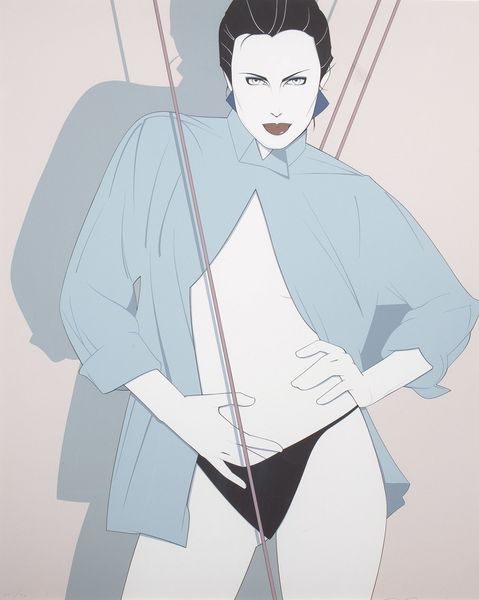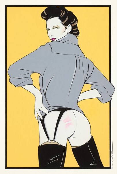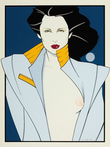 Patrick Nagel's "Girl in Yellow Shirt" embodies the smooth aesthetic of the 1980s, achieved through precise graphic techniques. Likely created as a serigraph print, each color would have been laid down separately using stencils. This process lends itself to the stark, flat planes of color Nagel favors. Note how the background is a seamless gradient, achieved by careful blending of inks. The figure's skin is rendered in a similarly impersonal way. The work's visual appeal stems from this streamlined production method, echoing the era's fascination with new wave aesthetics. In contrast to painterly brushstrokes, the printmaking process aligns with the cool detachment characteristic of consumer culture. Nagel's work, with its mass-produced, sleek style, challenges traditional notions of artistic expression. It asks us to consider the value of machine-made versus handmade imagery, and its connection with commerce.
