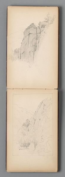 Editor: Here we have "Rocky Landscape; verso: Partial Landscape" by Sanford Robinson Gifford, created sometime in the 19th century. It looks like a spread from a sketchbook. What strikes me is its raw, unfinished quality. What stories do you think these sketches tell? Curator: I see a commentary on westward expansion. Gifford, a Hudson River School painter, was capturing the "untouched" American landscape. But whose landscape was it, really? These rapid sketches belie the dispossession of Indigenous peoples, essential to that expansion. What do you see in his quick strokes? Editor: I guess I hadn’t thought of it that way. They seemed innocent, but I see your point. The land was already inhabited and these drawings are part of a larger narrative. Curator: Exactly. Art isn't created in a vacuum. Considering the historical context deepens our understanding, don't you think?