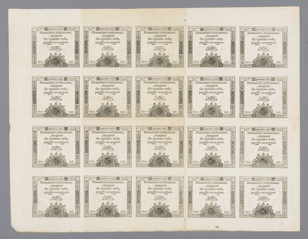 Editor: This is Richard Nicolaüs Roland Holst’s "Kleurenschema met cijferaanduiding voor een glas in lood raam," a color scheme with numbers for a stained glass window, made sometime between 1878 and 1938, using ink and paper. The gridded pattern, the geometry...what should I be seeing here? Curator: What interests me is the interplay between the artisanal and the industrial in this preparatory drawing. Notice how it meticulously maps out a system, each cell assigned a color and number, pointing towards mass production, but still reliant on skilled handwork to produce the stained glass. How do the materials—ink, paper—contribute to this dynamic? Editor: So, it’s less about the aesthetic effect of the final window and more about... the labor involved in making it? Curator: Exactly. Art Nouveau often gets read for its flowing lines and organic forms. But this drawing forces us to consider the factory floor where those forms would come to life. Consider the economic context. Who would commission such a window, and who would be producing it? Editor: So, we’re looking at social class as embedded in the very *making* of this art object? It wasn’t created in a vacuum. Curator: Precisely. And what does it mean to reduce color to numerical code? Does this system liberate or constrain artistic expression, do you think? Editor: It's like the blueprint before the build, almost devoid of artistic flair. Before this conversation, I was ready to write it off as a draft. Curator: It invites us to analyze not just the end result, but the means of production that underpins the Art Nouveau style itself. Editor: Right. Thinking about the labor changes everything. Thanks, that’s really opened my eyes!
