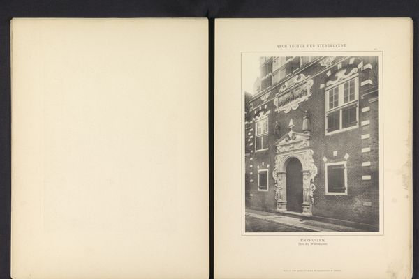 Curator: This photograph, titled "Gezicht op het pand de Steenrotse aan de Dwarskaai in Middelburg," was taken before 1894 and now resides in the Rijksmuseum collection. It presents a cityscape rendered through the lens of realism and techniques from the Dutch Golden Age. Editor: My immediate impression is of gravity, a still moment perfectly captured in monochrome. The light emphasizes the architectural details, the windows staring back like vacant eyes, and evokes the memory of past inhabitants. Curator: It's interesting that you mention the 'vacant eyes' aspect because windows are seen as the soul's mirror in the symbolism that relates to a person's gaze of openness to an experience within a particular cultural understanding of an experience. Windows frame perspectives on the outside. Do you sense such reflection on the outside or within the building? Editor: The strict orthogonal geometry—the verticals and horizontals dissecting the plane, gives the photograph structure. It’s so rigid. What of that structure says the most to you in thinking about cultural expression in the moment and long-term in terms of memory? Curator: In Northern European art, we're talking about the way domestic architecture echoes not just social class, but of communal identity and individual protection. Those stories, etched in stone and frame are reflective of status and moral integrity. The formal style creates an illusion that history is solid. But its rigid portrayal, especially from the Golden Age, makes it so compelling still. Editor: The photograph has very precise qualities, hasn’t it? It shows how photographers during that time would have needed a full comprehension and capability to present not just a reproduction of the image but the idea that light itself can reflect not just surface, but a conceptual history through what architecture comes to represent. The image isn’t so objective. Curator: It almost has an archetypal quality of time suspended. These images are powerful not only because they demonstrate photography as art form, but it makes clear its influence as an anchor for collective remembering. Editor: The interplay of light and shadow provides a narrative of change across that building, as well. Curator: Precisely, that sense of duration—its testament! Editor: Absolutely, it adds another layer. This image resonates deeply now.