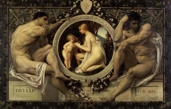 Editor: Okay, so this is "Pygmalion and the Image III: The Godhead Fires" painted in 1878 by Edward Burne-Jones. It’s oil and gouache on linen, and looking at it, I’m immediately struck by this feeling of ethereal stillness and the transformation unfolding. The sculptor almost seems hesitant in bringing his sculpture to life. What do you see in this piece? Art Historian: Ah, Burne-Jones. He was a true dreamer with a paintbrush, wasn’t he? What I see is a dance between creation and desire, and isn’t that always a delicious tension? The story of Pygmalion, so full of longing that it bends reality, has always fascinated artists. Note how Burne-Jones positions the figures, the almost reluctant touch as life sparks into being, but, I ask myself, who is awakening whom? Is it Pygmalion gifting life, or is Galatea pulling him into her reality? I find myself in an Escher staircase of possibilities when I contemplate this work. Editor: I see what you mean. It's more of an exchange than I initially thought. Art Historian: Indeed! It reminds me of a poem by Rilke, talking about how lovers are "two solitudes that protect, border, and salute each other." Perhaps Burne-Jones hints that true creation arises only from that border. What do you make of the colour palette, the sort of muted vibrancy of it all? Editor: It contributes to the dreamlike quality. And the doves… are they symbolic, or just pretty accents? Art Historian: Oh, my dear, with the Pre-Raphaelites, nothing is just pretty! Doves often symbolize love, peace, or even the Holy Spirit. Their presence reinforces the idea of a sacred, almost divine moment. Each dove, I'm sure, has a tale to whisper, a symbol to unveil, or maybe it's just Burne-Jones’ fancy of birds at his backyard, you know? Inspiration strikes in strange forms! What will you do with that bird chirping in your head? Editor: This painting definitely has a lot more layers than I first perceived. Art Historian: That’s the joy of art, isn’t it? Peeling back those layers and discovering the unexpected. Next time you stand before a painting, ask yourself not just what you see, but what it makes you feel, what stories it stirs within you. Art is just an incitation, a match set to tinder. Editor: I definitely will, thanks!
