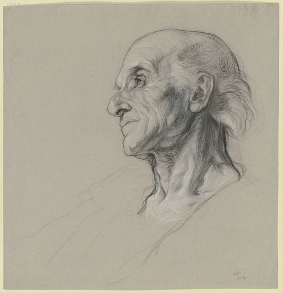 Victor Müller rendered this study of a balding, side-whiskered man with brown wash over graphite. The composition evokes a sense of introspection, drawing us into the depths of human thought and emotion. Consider the motif of the averted gaze, seen here; it is far from new. Throughout art history, from classical sculptures to Renaissance portraits, figures often look away, inviting the viewer to ponder their inner worlds. This gesture is a visual representation of contemplation. The man's furrowed brow and downturned mouth suggest a moment of profound reflection, perhaps even sorrow. Think of depictions of the melancholic temperament in ancient Greek and Roman art, where such expressions were linked to intellectual depth and creative genius. This representation is deeply rooted in our collective psyche, reminding us of the universal human experience of contemplation and the search for meaning.