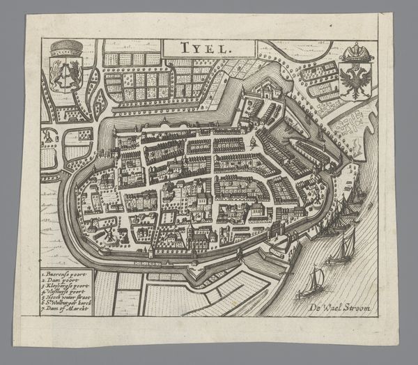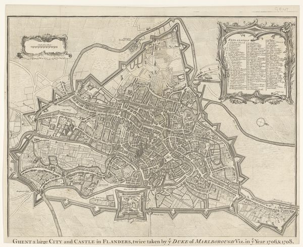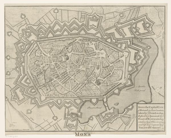 Editor: So, this detailed rendering is “Plattegrond van München,” a baroque print, drawing and engraving of Munich created between 1729 and 1733 by Wenceslaus Hollar. What strikes me is the contrast between the rigid geometry of the fortress walls and the almost organic sprawl within. What symbols and stories do you see woven into this plan? Curator: Notice the deliberate arrangement of space within the city, echoing symbolic forms and perhaps hierarchies. Consider how this layout might reflect not just physical defense, but also a worldview – a way of organizing society itself. Can you sense a cultural narrative embedded in this ordered vision? Editor: I think so, the structured nature shows the clear planning of a strong cultural capital with everything designed to work in unison, which suggests they wanted it to become an established and permanent power. What kind of narrative would the buildings be expressing to the general population at the time? Curator: These kinds of structured renderings would likely evoke pride, security, perhaps even a sense of destiny. Do you see how the sharp angles of the fortifications project an image of power, almost like a visual manifesto of Bavarian authority? But what about the areas outside the city walls; how does the river, or what appear to be landscaped gardens relate? Editor: Right, the outside is far less rigid and imposing; it is a contrast between untamed nature and structured societal life, creating an ever-present power dynamic. Seeing the planned landscape, I notice that Baroque cityscapes used a visual language of order and control, what psychological effect do you think that could have on the population? Curator: Indeed! The aim was probably to project an image of stability and sophistication and thereby create an emotional impact, possibly designed to inspire obedience. What does it suggest to you? Editor: I think this engraving reveals a lot more than just a physical layout; it gives you an emotional insight into the city’s social structure. Curator: Agreed. These carefully crafted plans are visual echoes of a society's ambitions, memories, and perhaps its anxieties.