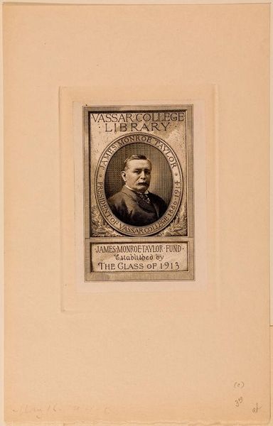 Curator: This is Sidney L. Smith's "Bookplate of Henry Livingston Rowe." Editor: It’s quite lovely, actually. The oval portrait of the child gives it an intimate, almost sentimental feeling. Curator: Bookplates like this became quite fashionable in the late 19th century as a way for individuals to mark their ownership of books, reflecting the growth of a middle class with literary aspirations. Smith was a master engraver, whose skills catered to this market. Editor: Yes, the detail is striking. Look at the precision of the lines, the textures he creates with such a limited tonal range. The Latin motto, “Vincit qui patitur”—He conquers who endures—adds a layer of solemnity. Curator: It suggests the values Livingston Rowe wanted to project through his library. Bookplates like these became powerful symbols of status and intellect. Editor: It really compresses so much identity into such a small, carefully wrought frame. Curator: Indeed. It is fascinating how the bookplate became a little vignette of the owner's aspirations.