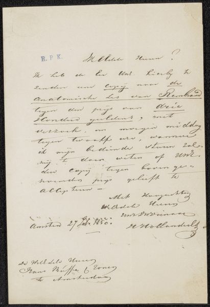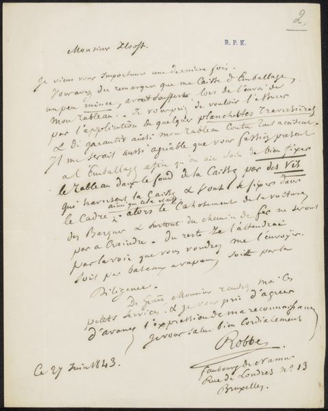 This letter was penned by Louis Robbe to Louis Pierre Verwée, though its exact date remains unknown. It's a simple piece of paper, yet it speaks volumes about artistic collaboration in the 19th century. The letter itself, with its handwritten script, reflects a personal, almost craft-like mode of communication. The mention of lithographs provides a window into the artistic practices of the time. Lithography, as a printmaking technique, allowed for the relatively easy reproduction of images, playing a crucial role in the dissemination of art and ideas. Robbe's request for "terre de sienne non Brulée" – raw sienna pigment – underscores the artist’s attention to materiality. Pigments like these were the raw ingredients of painting, sourced and processed to achieve specific colors and effects. Ultimately, this letter serves as a reminder that behind every artwork lies a network of relationships, materials, and processes. It challenges us to look beyond the finished product and consider the social and material conditions that made its creation possible.