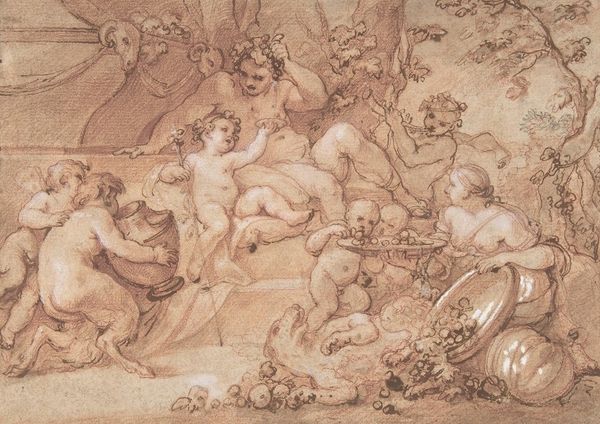Robert Smirke created this Bacchinalia Scene, a sketch, at some point during his lifetime, between 1752 and 1845. The image teems with figures, both human and mythological, caught in a whirlwind of revelry. Smirke’s work reflects the 18th and early 19th century fascination with classical antiquity, but also its patriarchal structure. The artist, a white man, presents the Bacchanal as a moment of ecstasy, yet the female figures appear subordinate, caught in the frenzy orchestrated by male desire. The scene is alive with movement, a dance of bodies intertwined in a chaotic, orgiastic display. It's impossible to ignore the undercurrent of sexuality and power, even violence. Are we invited to partake in this liberation, or are we positioned as observers, cautiously peering into a world of unchecked male privilege? The emotional impact is unsettling, provoking questions about who is free to revel and at what cost. Smirke’s sketch leaves us to consider the legacies of historical portrayals, and their relevance in contemporary dialogues about gender and power.