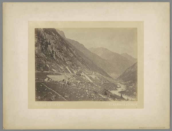 This photograph, "Gezicht op berghotel Schwarenbach aan de Gemmipas," by Arthur Gabler, invites us to consider the convergence of landscape, labor, and leisure. The albumen print, a popular photographic process of the 19th century, was created by coating paper with a layer of egg white and then a light-sensitive silver solution. The resulting image, sepia-toned and rich in detail, captures the rugged beauty of the Swiss Alps. This photograph would have involved a skilled photographer, darkroom technicians, and a robust distribution network. What's particularly compelling is how the image itself reflects the human endeavor to tame the landscape, the hotel perched precariously on the mountainside. It is a testament to human ingenuity and the burgeoning tourist industry. Paying close attention to materials and making allows us to appreciate the many layers of meaning embedded in the work, and question the value of art and craft.