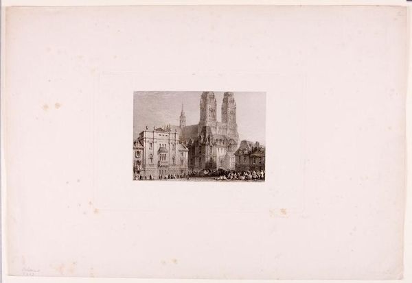 Curator: Thomas Higham’s print, titled *Boulevards, Paris*, captures the vibrant energy of Parisian life. Its composition is quite striking, don't you think? Editor: It does, but I am struck by its overall festive mood. It feels almost like a staged spectacle, with the balloon floating above as a symbol of aspiration or perhaps escape. Curator: I see your point. Focusing on its formal elements, the delicate etching technique employed by Higham really highlights the architectural details and the bustling crowd. The linear perspective is also cleverly used, drawing the eye deep into the scene. Editor: Yes, and that central tree… It acts as a visual anchor, yet it also feels like a marker of nature's presence amid the urban sprawl. Trees as markers of culture. Curator: I find the buildings to be incredibly intentional, and they establish a nice visual rhythm, almost like musical notation across the pictorial plane. Editor: Ultimately, the image preserves a moment in time, imbued with the aspirations and realities of a city on the rise. Curator: Indeed. It’s a fascinating study in textures and tones, offering a rich tapestry of Parisian life.