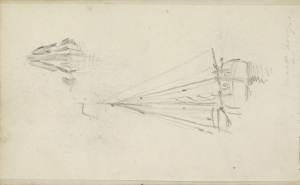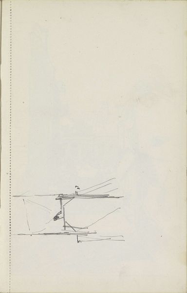 Curator: This drawing, titled "Gewelf," comes to us from Carel Adolph Lion Cachet, circa 1905, here at the Rijksmuseum. It appears to be a study using pencil. Editor: Mmm, I find it quite calming. A bit like looking at architectural plans that have been distilled down to their simplest, most essential lines. The softness of the pencil contributes, almost like a whispered promise of a grand design. Curator: It’s compelling, isn’t it? You get that whisper of a grand design because, "Gewelf" translates to "Vault". We are glimpsing Cachet's mind at work, his interest in structures – specifically, arched vaults – revealing something of the art nouveau style then gaining momentum. These weren’t just structural components; they were symbols of aspiration. Editor: Aspiration! I see that. It's interesting how geometric forms, in this instance, stir feelings. Those lines reach upward and outward – there's expansion, an uplifting motion. Also, what are your thoughts about its incompleteness, the abstraction present here? Curator: The unfinished nature is part of its allure. Art Nouveau was often about suggesting, alluding, leaving space for the viewer's imagination to complete the picture. The very visible pencil lines contribute, underscoring the sense of something in formation, a potential energy that carries immense creative potential. We sense his movement, his calculations, his intent right here in these few strokes. Editor: Exactly, and the contrast of such a defined rectangular structure set next to the free flow of organic curvilinear forms is great, kind of setting limits to freedom of interpretation but then suggesting where the viewers mind can flow more freely. What I perceive as an architectectural structure now morphs more towards some creature or construction inspired by marine life, some peculiar jelly fish skeleton, suspended between geometric borders... Curator: Yes! That's it – that intersection, it really embodies a transitional spirit: the rigidity of the industrial age and the burgeoning freedom of expression which seems at the heart of Cachet's intentions. The drawing makes it feel deeply personal. Thank you for helping unlock more connections and visual memory about Cachet's approach. Editor: My pleasure. Always a journey through time when diving in these hidden graphical structures...