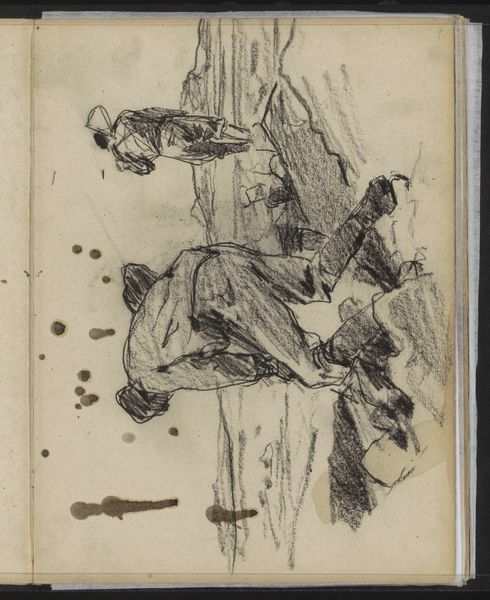 Curator: This is "Boer aan het werk op het land," or "Farmer Working the Land," by Willem Witsen, likely created between 1893 and 1897. It's currently held here at the Rijksmuseum. We know it combines graphite and pen. Editor: My first impression is that this is quick, raw. A snapshot of labor more than a polished statement. The neutral colors add to this feeling – like looking through an old photo. Curator: Exactly. I'd call your attention to how Witsen employs plein-air techniques in his sketches, documenting the realities of agricultural labor and the landscapes in which it took place, and specifically this work feels very immediate. You see that translated to this pen and graphite application and the choices of what he included as being central in his composition. The artist zeroes in on that one single figure to describe this person’s whole life, almost. Editor: There's something beautiful in the stoop of the figure, wouldn’t you say? This drawing evokes such empathy— a feeling of honoring their back-breaking work. I get that sense of solidarity or maybe...shared humanity? And Witsen almost gets out of the way, lets that single pose speak for volumes. Curator: Consider the socio-economic context of Witsen's work, here. Rural subjects reflect the period's shifting economic landscape, where agricultural labor remained central while urbanization gained pace, impacting working classes through both exploitation and progress. So these drawings capture a record, perhaps in an unvarnished form. They help in a deeper reflection of the society of this age. Editor: It strikes me that this humble farmer probably never imagined his likeness displayed in the Rijksmuseum. I'd venture to imagine him a figure rendered, if I may, as both eternal, and immediately familiar. Curator: In essence, Witsen prompts considerations of our consumption, production, and those often invisible human labors underlying it all. Editor: Absolutely, and that's the profound thing isn’t it? We are given permission through works such as this, that force both our inner, and outer gazes, to reflect in meaningful dialogue.