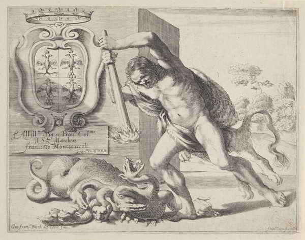 This engraving by Hieronymus Cock presents us with a complex meditation on mortality. The composition is structured around the stark contrast between youth and death. Observe the juxtaposition of the child-like figure, seemingly asleep, and the looming presence of the skull. The artist uses stark lines and contrasting tones to draw our eyes to these symbolic elements. The skull, a traditional 'vanitas' symbol, sits atop a ledge dominating the composition with its silent memento mori. Consider how the artist uses this imagery to destabilize our understanding of time and existence. The inclusion of an hourglass and the Latin inscription 'Hodie mihi, cras tibi'—'Today for me, tomorrow for you'—serves as a stark reminder of the transience of life. These visual and textual components reflect broader philosophical concerns about the fleeting nature of earthly existence. It challenges us to reconsider fixed notions of beauty and decay by linking them in one composition.